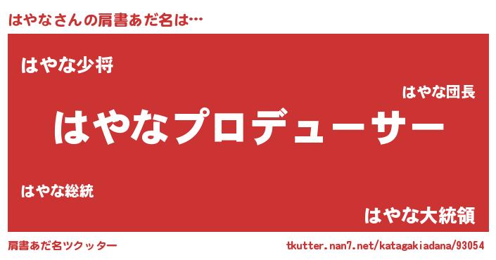| 男性向けラノベタイトル風あだ名 | 『はやなに滅ぼされるだけの簡単なお仕事です』 |