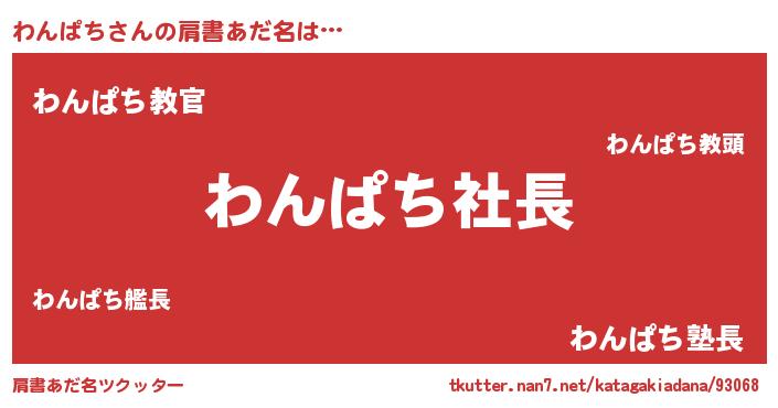 | 欧米人風あだ名 | 『マイケルわんぱち』『ウサインわんぱち』 |