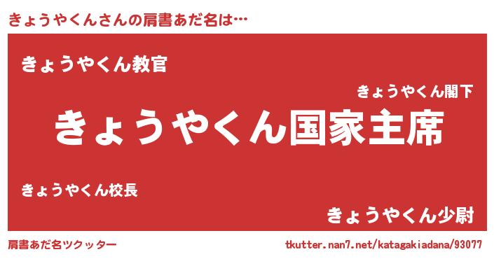 | ファンタジー風あだ名 | 『エターナルキョウヤクンー』 |