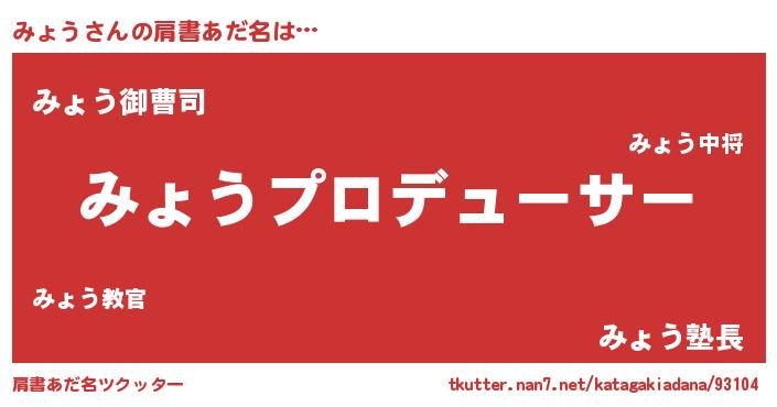 | 男性向けラノベタイトル風あだ名 | 『はたらくみょうさま!』『みょうの憂鬱』 |