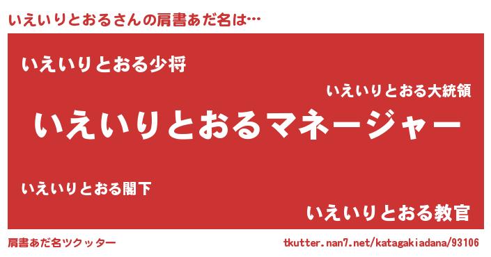 | 男性向けラノベタイトル風あだ名 | 『はたらくいえいりとおるさま!』 |
