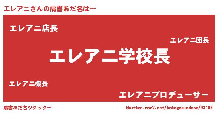 | 男性向けラノベタイトル風あだ名 | 『おまえをオタクにしてやるから、俺をエレアニにしてくれ! 』 |