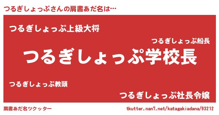 | 男性向けラノベタイトル風あだ名 | 『おまえをオタクにしてやるから、俺をつるぎしょっぷにしてくれ! 』 |