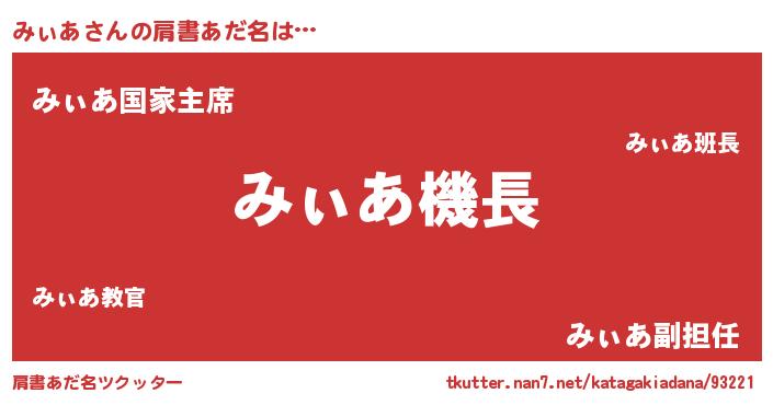 | ヒーロー風カッコイイあだ名 | 『ウルトラみぃあマン』『ネオミィア』 |