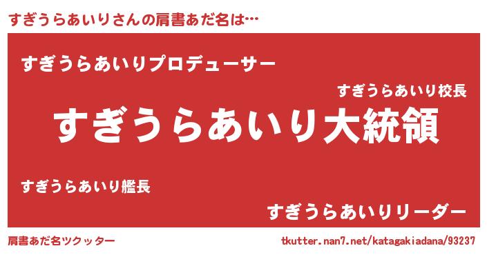 | 意味不明あだ名 | 『すぎうらあいりフォーエバー』 |