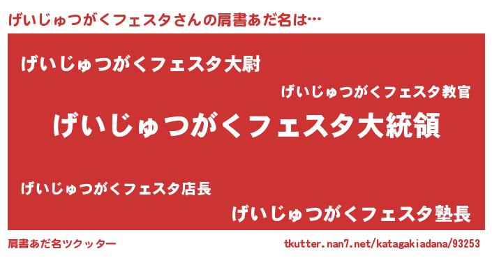 | 女子向けラノベタイトル風あだ名 | 『げいじゅつがくフェスタの婚約者』 |