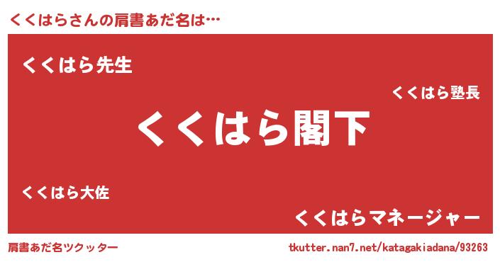 | 意味不明あだ名 | 『自称くくはら』『永久保存くくはら』 |
