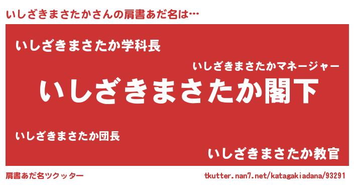 | 女子向けラノベタイトル風あだ名 | 『いしざきまさたかなんてお断りですっ。』 |