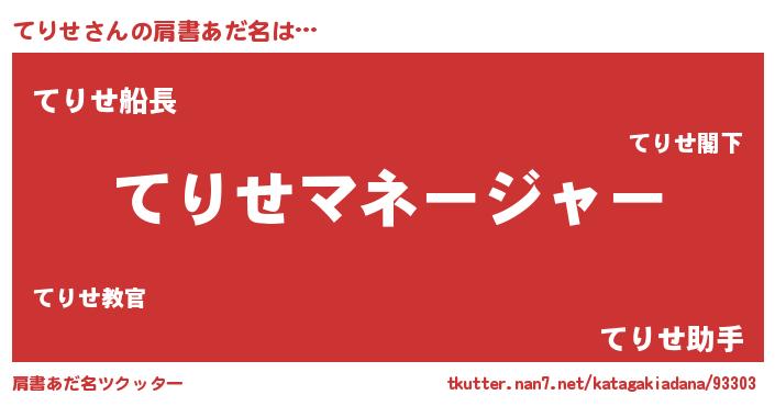 | 男性向けラノベタイトル風あだ名 | 『はたらくてりせさま!』 |