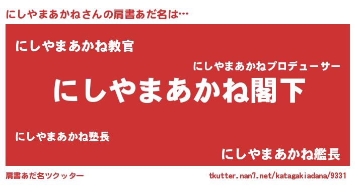 | 意味不明あだ名 | 『自称にしやまあかね』 |