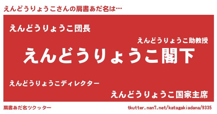 | 意味不明あだ名 | 『自称えんどうりょうこ』 |