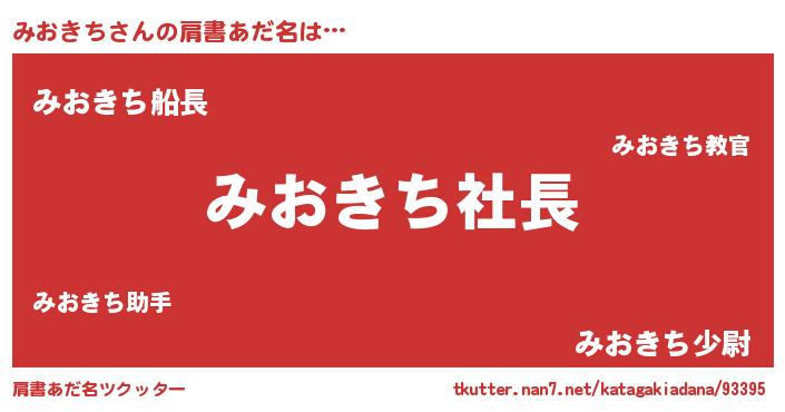 | ヒーロー風カッコイイあだ名 | 『スーパーミオキチ』『仮面ミオダー』 |