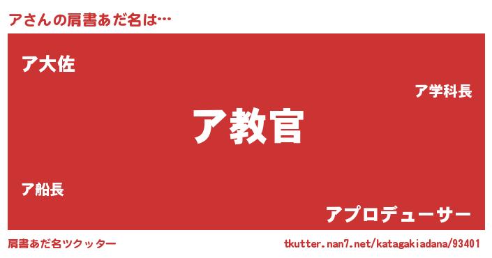 | 男性向けラノベタイトル風あだ名 | 『魔弾の王とア』『転生したらアだった件』 |