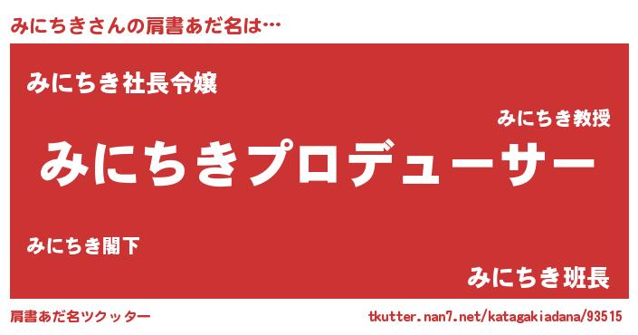 | 男性向けラノベタイトル風あだ名 | 『みにちきに滅ぼされるだけの簡単なお仕事です』 |