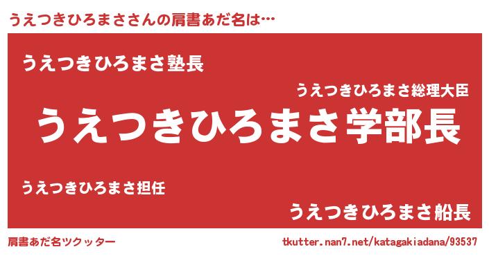 | 男性向けラノベタイトル風あだ名 | 『おまえをオタクにしてやるから、俺をうえつきひろまさにしてくれ! 』 |