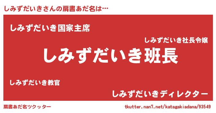 | ポケモン風あだ名 | 『ヒシミズダイキ』『シミズダネ』 |