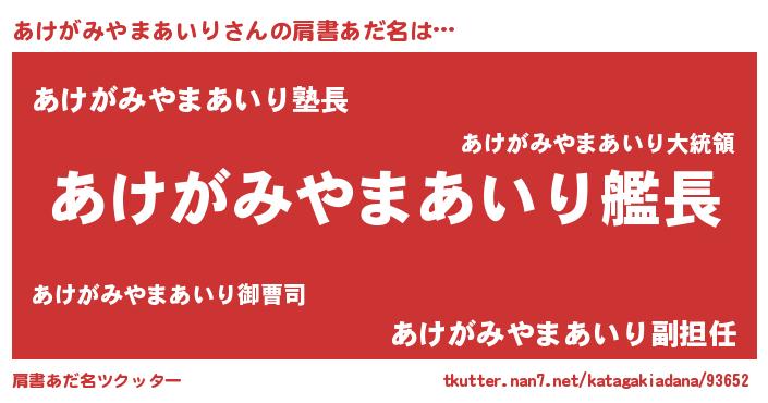 | 欧米人風あだ名 | 『あけがみやまあいり・ステッグマイヤー』 |