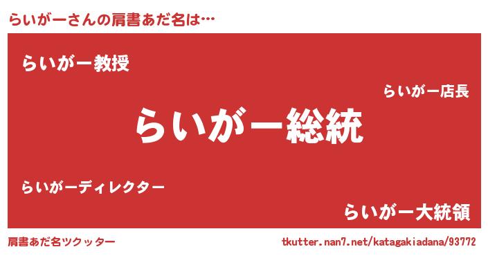 | 意味不明あだ名 | 『自称らいがー』『らいがーフォーエバー』 |
