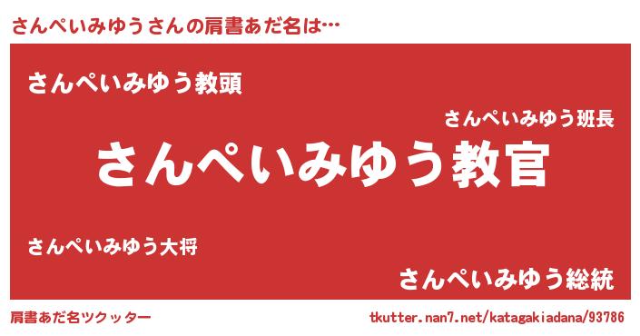 | 意味不明あだ名 | 『住所不定無職さんぺいみゆう(74歳)』 |