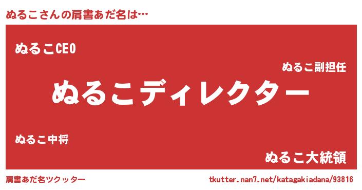 | 男性向けラノベタイトル風あだ名 | 『はたらくぬるこさま!』 |
