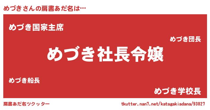 | ヘコむあだ名 | 『めづもー』『酢こんぶ』『めづ太郎』 |