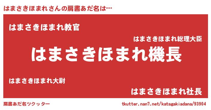 | 男性向けラノベタイトル風あだ名 | 『うちのはまさきほまれが世界を掌握している!』 |