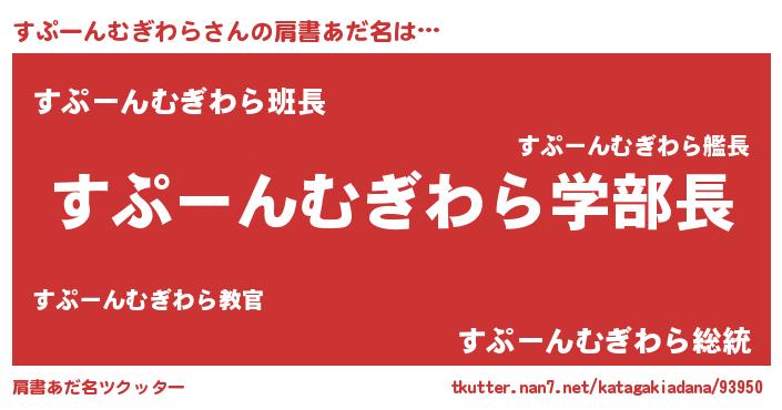 | ヘコむあだ名 | 『すぷぷりん』『すぷーんむぎわら(笑)』 |