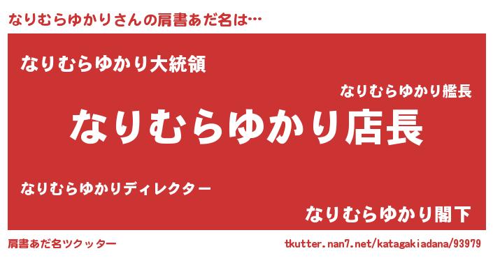 | 男性向けラノベタイトル風あだ名 | 『なりむらゆかりの憂鬱』 |