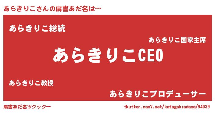 | ヒーロー風カッコイイあだ名 | 『スーパーアラキリコ』『ネオアラキリコ』 |