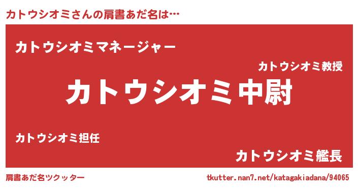 | ヘコむあだ名 | 『カトウシオミ(笑)』『カトふぇ~』 |