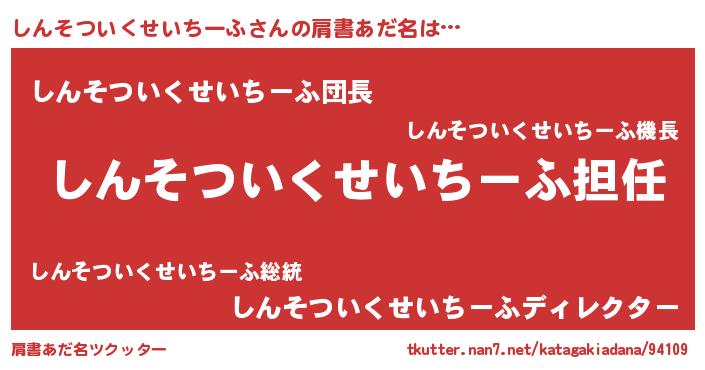 | ヒーロー風カッコイイあだ名 | 『ネオシンソツイクセイチーフ』 |