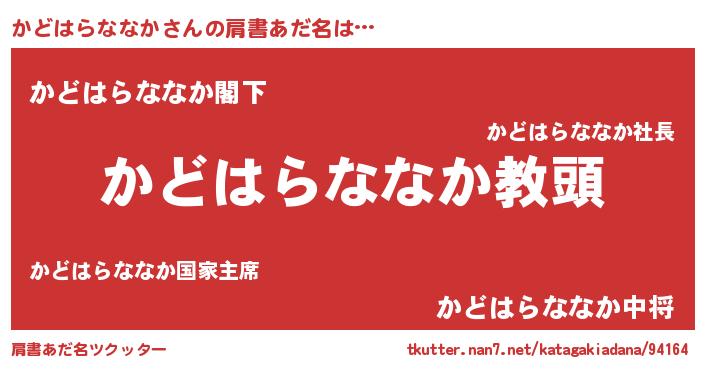 | 意味不明あだ名 | 『永久保存かどはらななか』 |