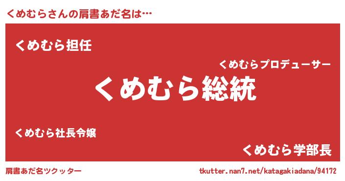 | ヘコむあだ名 | 『くめむら(苦笑)』『くめもー』 |