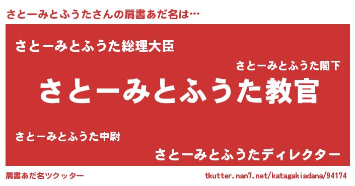 | 意味不明あだ名 | 『住所不定無職さとーみとふうた(95歳)』 |
