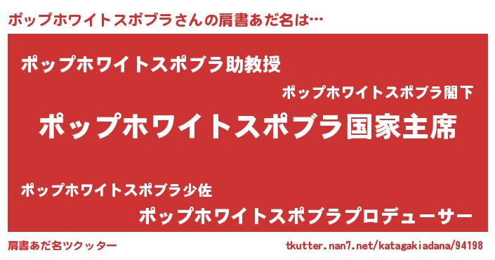 | ファンタジー風あだ名 | 『エターナルポップホワイトスポブラー』 |