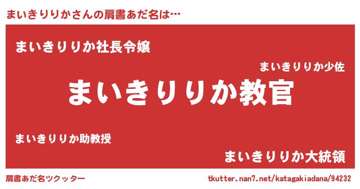 | 男性向けラノベタイトル風あだ名 | 『この素晴らしい世界にまいきりりかを!』 |