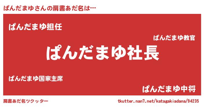 | ヘコむあだ名 | 『ぱんにー』『ぱんだまゆ(震え声)』 |