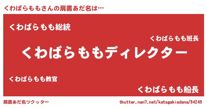 | 意味不明あだ名 | 『自称くわばらもも』 |