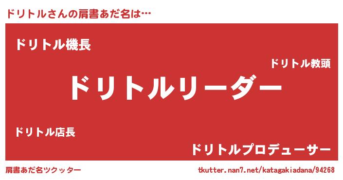 | ヘコむあだ名 | 『ドリっちょ』『ドリトル(震え声)』 |