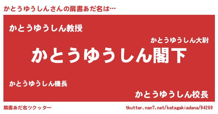 | ヘコむあだ名 | 『かとうゆうしん(笑)』『かとを』 |