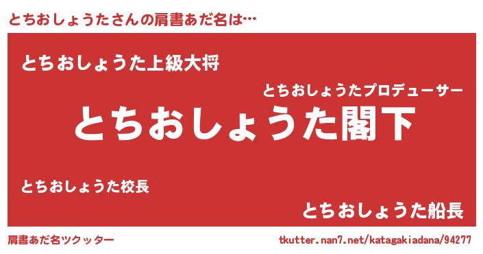 | ヘコむあだ名 | 『とちおしょうた(小並感)』『とちぷりん』 |