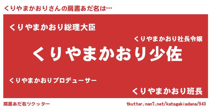 | 男性向けラノベタイトル風あだ名 | 『くりやまかおり~年齢イコール彼女いない歴の魔法使い~』 |