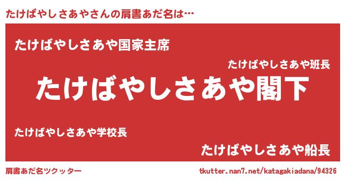 | 男性向けラノベタイトル風あだ名 | 『魔法科高校のたけばやしさあや』 |