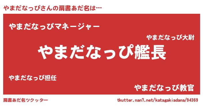 | 男性向けラノベタイトル風あだ名 | 『うちのやまだなっぴが世界を掌握している!』 |