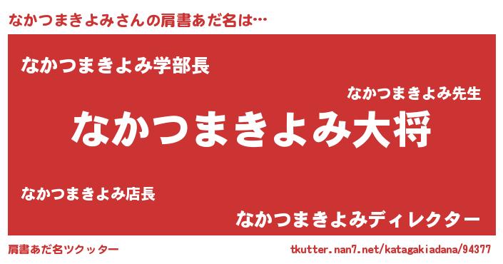 | ヘコむあだ名 | 『なかつまきよみ(震え声)』『なかっふぃ~』 |