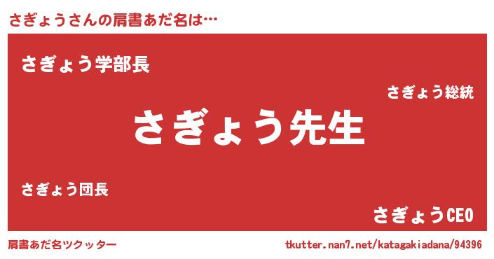 | ヒーロー風カッコイイあだ名 | 『ネオサギョウ』『天空の使者さぎょう』 |