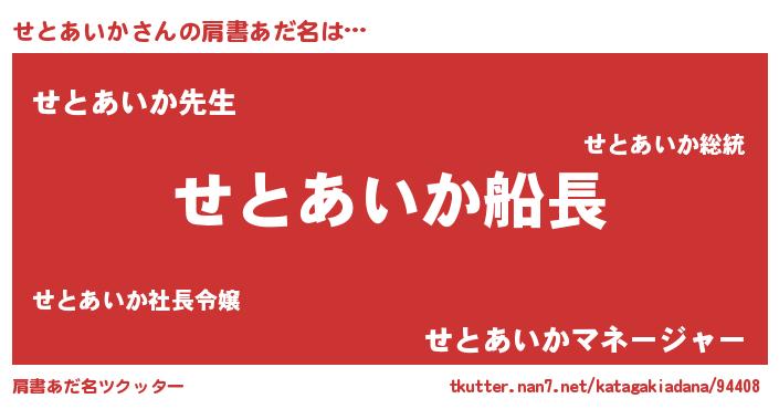 | 意味不明あだ名 | 『永久保存せとあいか』『自称せとあいか』 |