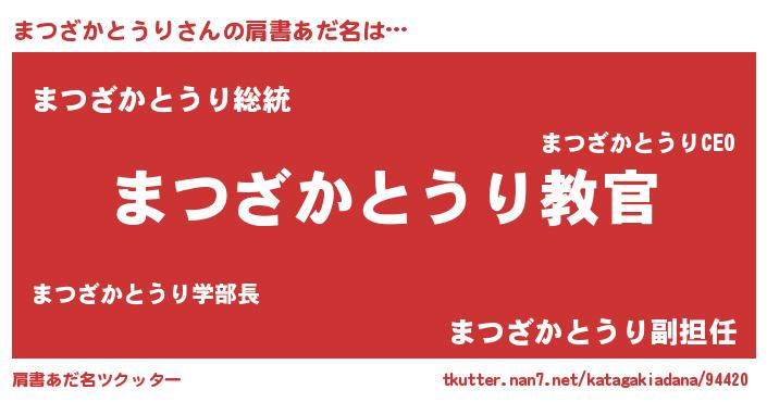 | ヒーロー風カッコイイあだ名 | 『仮面マツダー』『ネオマツザカトウリ』 |