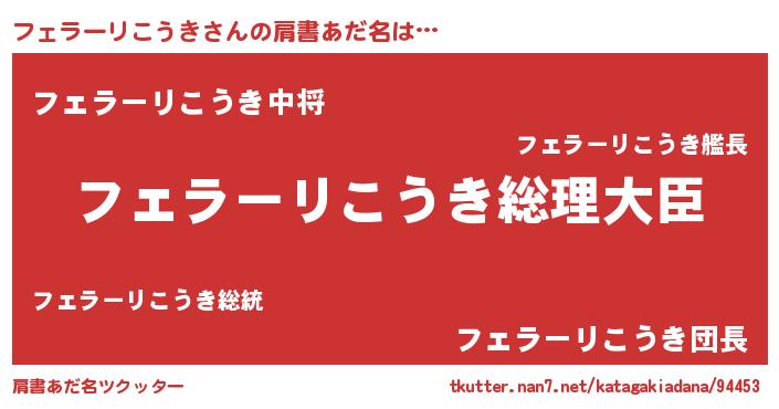 | 男性向けラノベタイトル風あだ名 | 『やはりフェラーリこうきの青春ラブコメはまちがっている 』 |