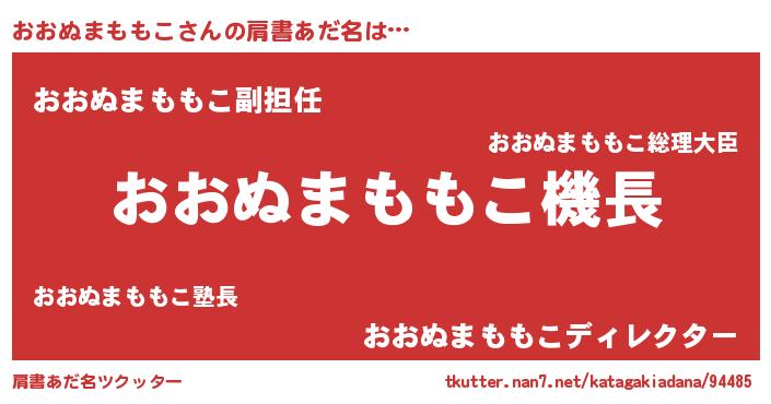 | 女子向けラノベタイトル風あだ名 | 『シンデレラおおぬまももこ家の靴箱館』 |